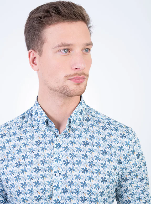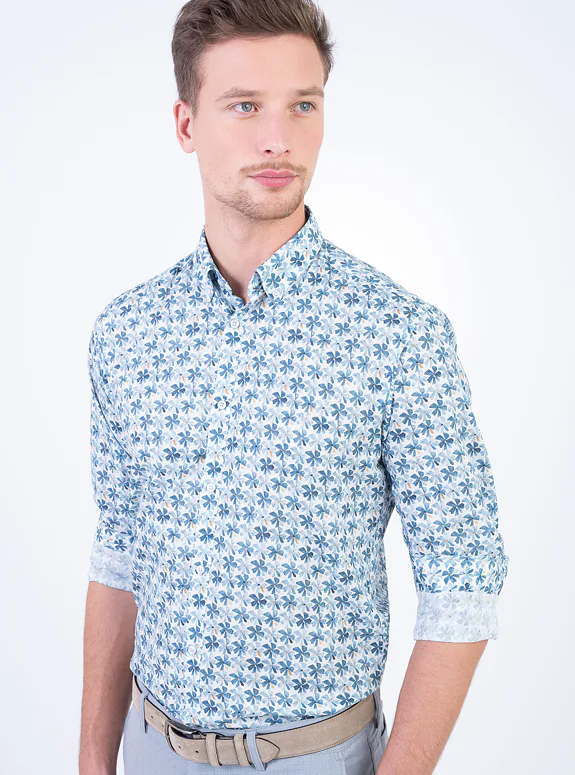 Bílo modrá košile z čisté bavlny od italského výrobce materiálů Albiate. Košile je ušitá ve standardním střihu pro větší pohodlí. Doporučujeme pro neformální příležitosti.