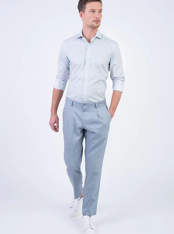 Bílo modrá košile z čisté bavlny od italského výrobce materiálů Albiate. Košile je ušitá ve standardním střihu pro větší pohodlí. Doporučujeme pro slavnostní příležitosti.