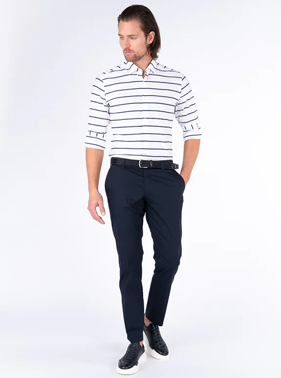 Bílo modrá košile z čisté bavlny od italského výrobce materiálů Canclini. Košile je ušitá v přiléhavém střihu, který kopíruje postavu. Doporučujeme pro neformální příležitosti.