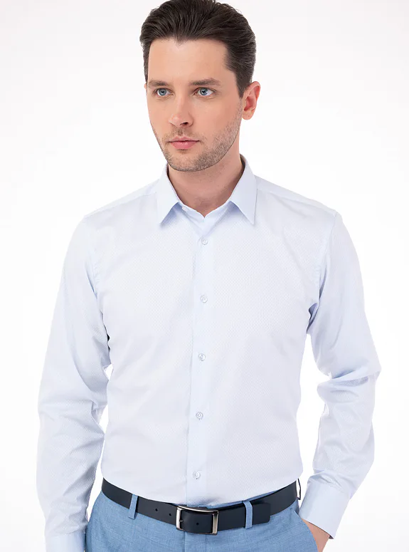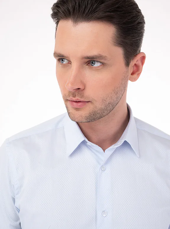 Modrá košile z čisté bavlny od rakouského výrobce materiálů Getzner. Košile je ušitá v přiléhavém střihu, který kopíruje postavu. Doporučujeme pro formální příležitosti.
