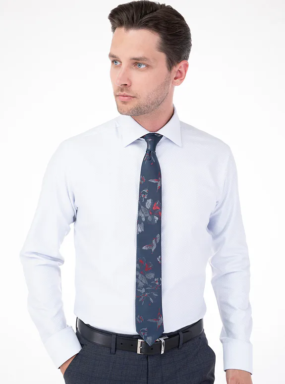 Bílo modrá košile z čisté bavlny od rakouského výrobce materiálů Getzner. Košile je ušitá ve standardním střihu pro větší pohodlí. Doporučujeme pro formální příležitosti.