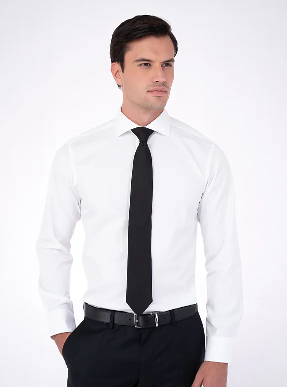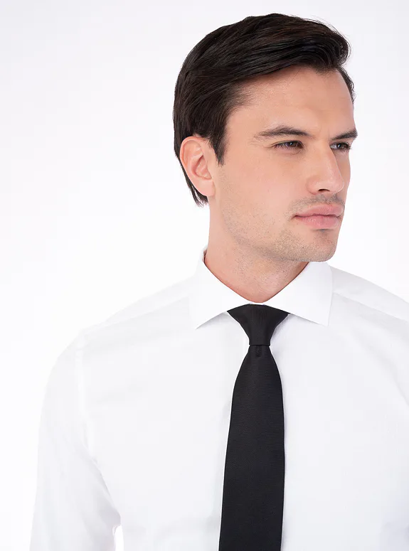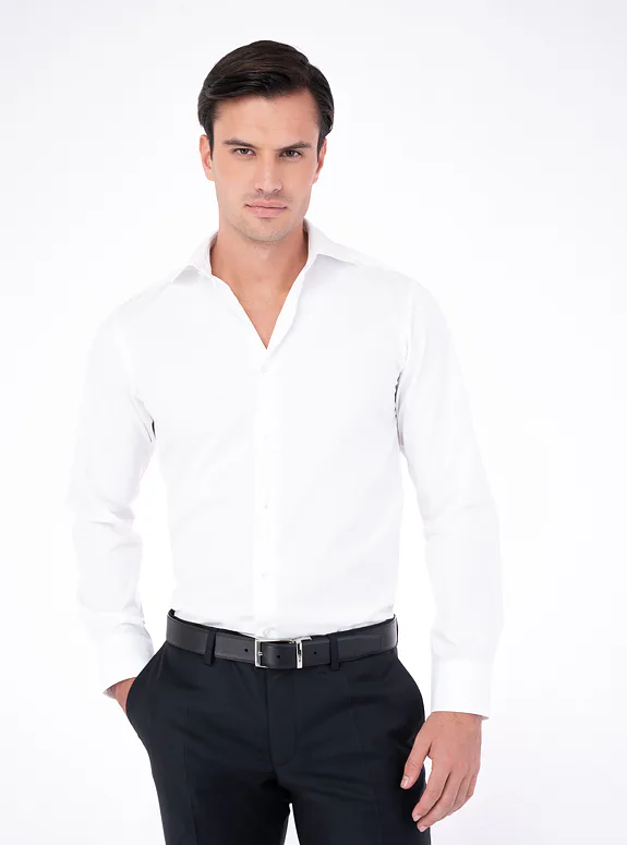 Bílá košile z čisté bavlny od italského výrobce materiálů Albini. Košile je ušitá v přiléhavém střihu, který kopíruje postavu. Doporučujeme pro formální příležitosti.