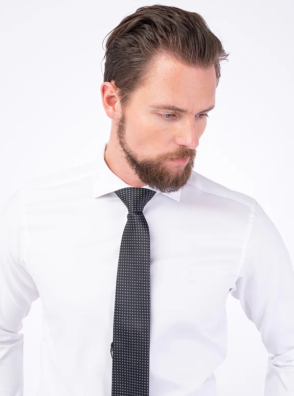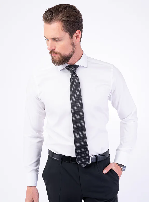 Bílá košile z čisté bavlny od rakouského výrobce materiálů Getzner. Košile je ušitá ve volném střihu pro větší pohodlí. Doporučujeme pro formální příležitosti.