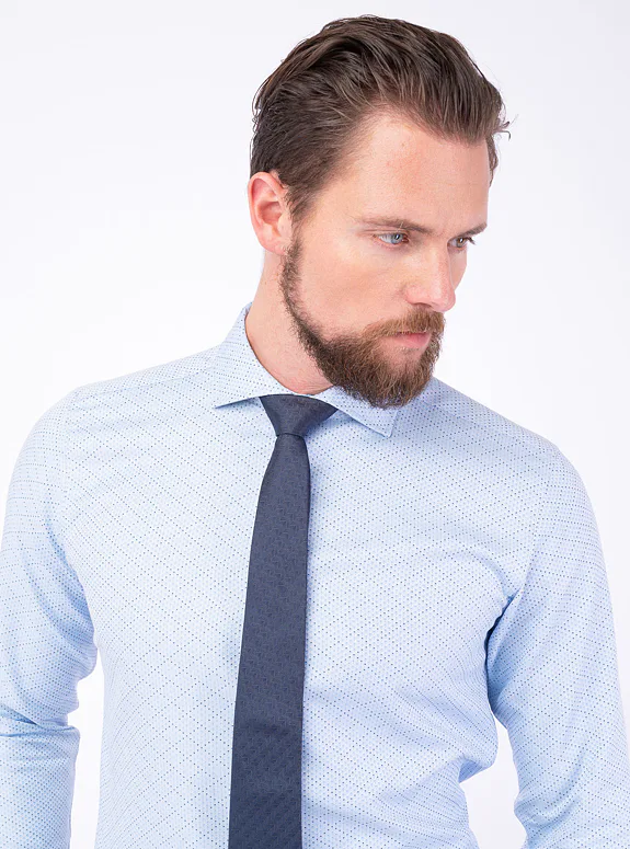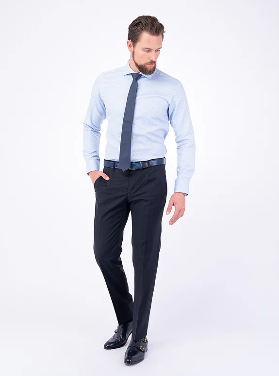 Modrá košile z čisté bavlny od rakouského výrobce materiálů Getzner. Košile je ušitá ve standardním střihu pro větší pohodlí. Doporučujeme pro formální příležitosti.