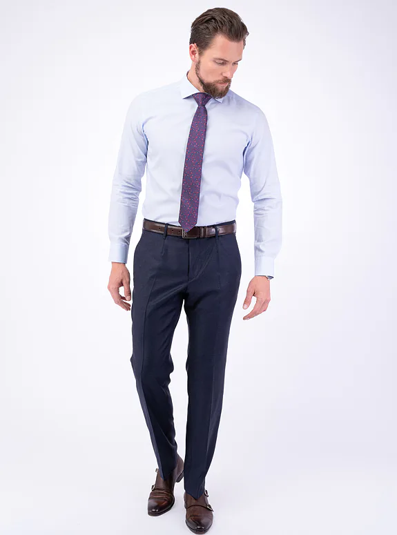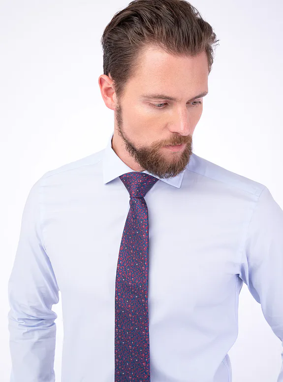 Modrá košile z čisté bavlny od italského výrobce materiálů Albini. Košile je ušitá ve standardním střihu pro větší pohodlí. Doporučujeme pro formální příležitosti.