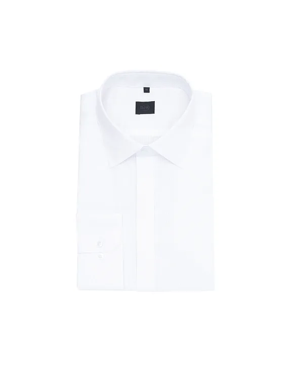 Bílá košile z čisté bavlny od rakouského výrobce materiálů Getzner. Košile je ušitá ve standardním střihu pro větší pohodlí. Doporučujeme pro formální příležitosti.