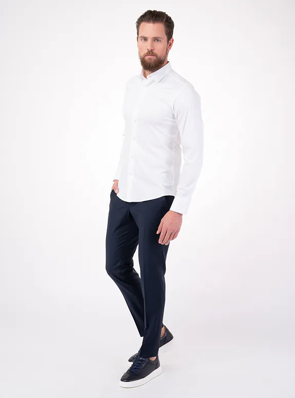 Bílá košile z čisté bavlny od italského výrobce materiálů Albini. Košile je ušitá v přiléhavém střihu, který kopíruje postavu. Doporučujeme pro neformální příležitosti.