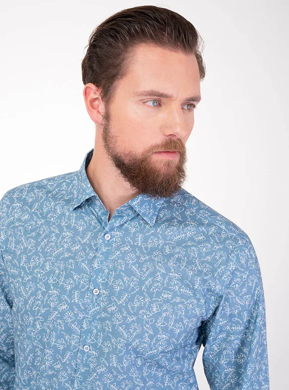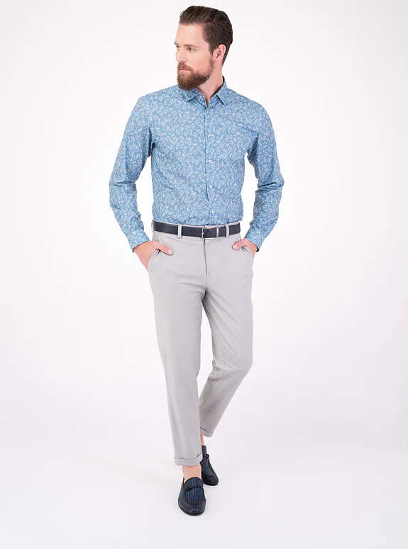 Bílo modrá košile z čisté bavlny od italského výrobce materiálů Albiate. Košile je ušitá ve volném střihu pro větší pohodlí. Doporučujeme pro neformální příležitosti.