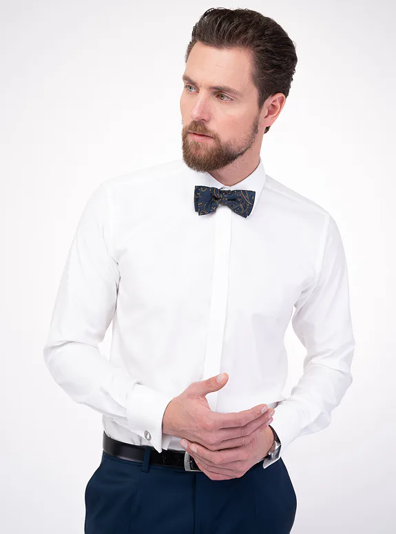 Bílá košile ze směsové bavlny od rakouského výrobce materiálů Getzner. Košile je ušitá ve standardním střihu pro větší pohodlí. Doporučujeme pro slavnostní příležitosti.