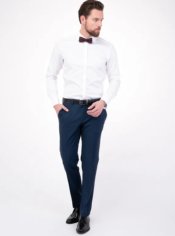 Bílá košile z čisté bavlny od britského výrobce materiálů Thomas Mason. Košile je ušitá ve standardním střihu pro větší pohodlí. Doporučujeme pro slavnostní příležitosti.