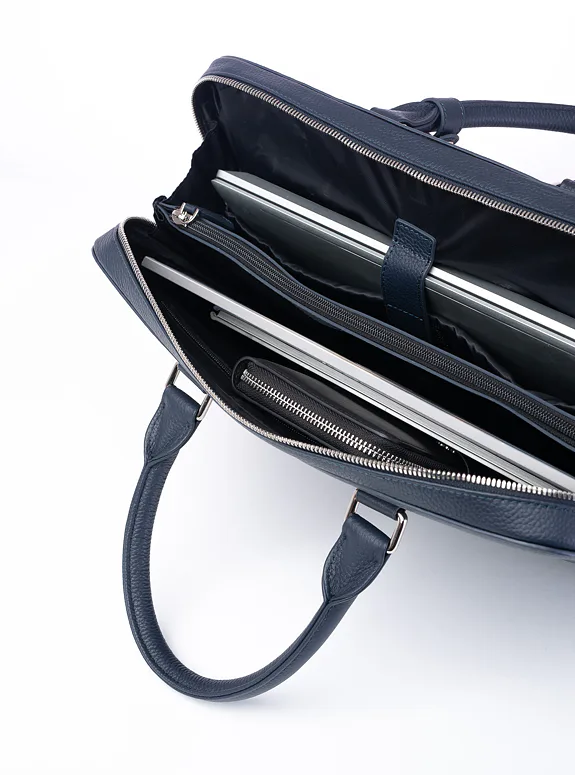 Podtrhněte svůj elegantní styl s touto modrou taškou z přírodní kůže, která kombinuje praktičnost s luxusem. Ať už jde o formální setkání nebo profesionální události.