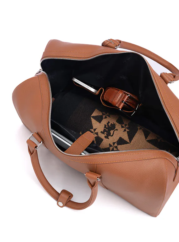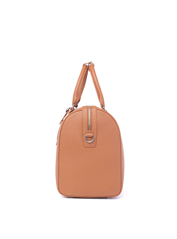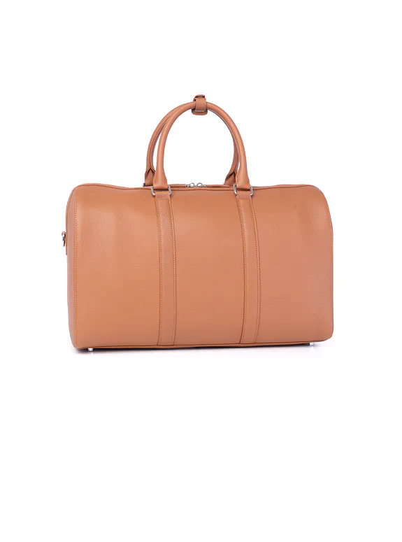 Buďte připraveni na cesty s touto světle hnědou víkendovou taškou z přírodní kůže, která kombinuje praktičnost s nádechem elegance.