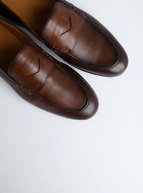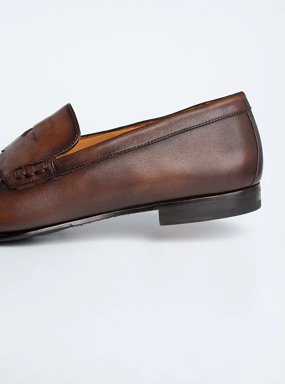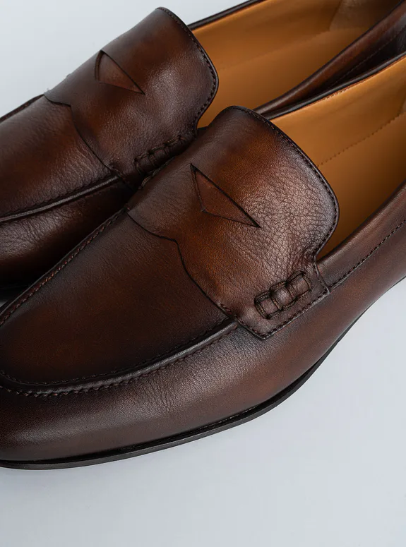 Hnědá obuv z přírodní kůže, vyrobená technologií Bologna Construction pro maximální pohodlí a flexibilitu. Doporučujeme pro každodenní i formální příležitosti. Tyto elegantní mokasíny se vyznačují nadčasovým designem a precizním zpracováním, které zaručují dlouhou životnost. Ideální volba pro ty, kteří hledají kombinaci stylu a komfortu. Obuv se přizpůsobí tvaru vaší nohy a poskytne celodenní pohodlí.