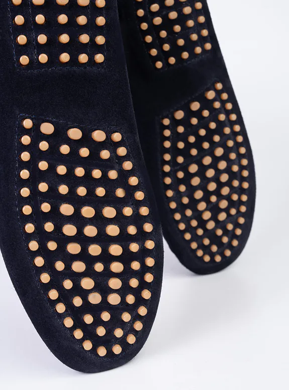 Modrá obuv na řízení z přírodní kůže. Doporučujeme pro každodenní řízení i stylové volnočasové využití. Tato elegantní a funkční obuv byla navržena s důrazem na pohodlí, flexibilitu a maximální kontakt s pedály. Speciální tečkovaná gumová podrážka zajišťuje stabilitu a plynulý pohyb při ovládání vozidla. Díky kvalitnímu zpracování a materiálům se boty přizpůsobí tvaru vaší nohy a poskytnou komfort i při celodenním nošení. Ideální volba pro ty, kteří hledají spojení řidičského výkonu a moderního stylu.