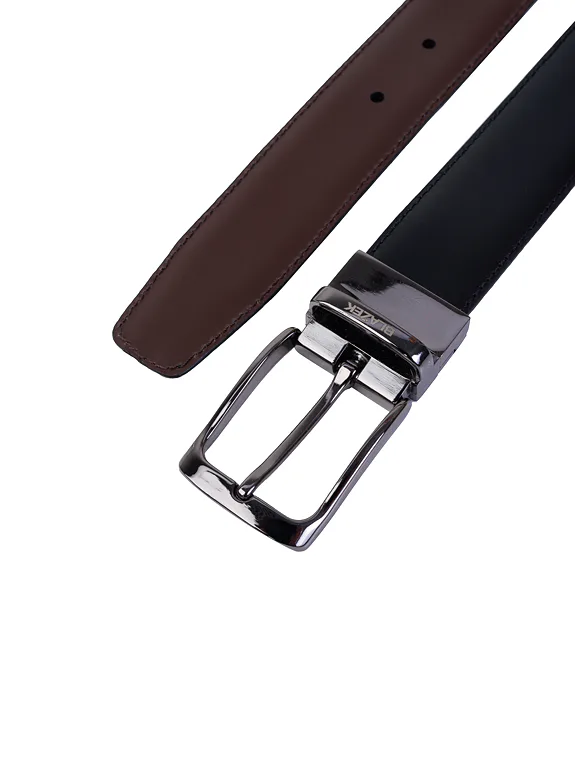 Černo hnědý opasek z přírodní kůže. Doporučujeme pro formální příležitosti.