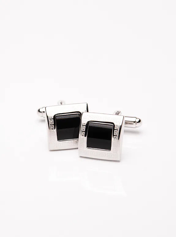 Stříbrno černé manžetové knoflíky z kovu. Doporučujeme pro formální příležitosti.