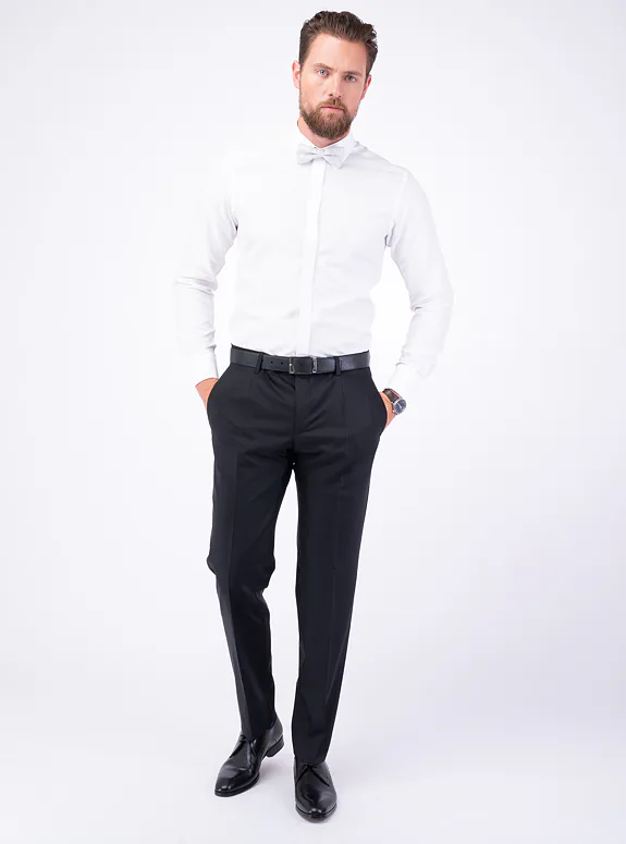 Bílá košile ze směsové bavlny od rakouského výrobce materiálů Getzner. Košile je ušitá v přiléhavém střihu, který kopíruje postavu. Doporučujeme pro slavnostní příležitosti.