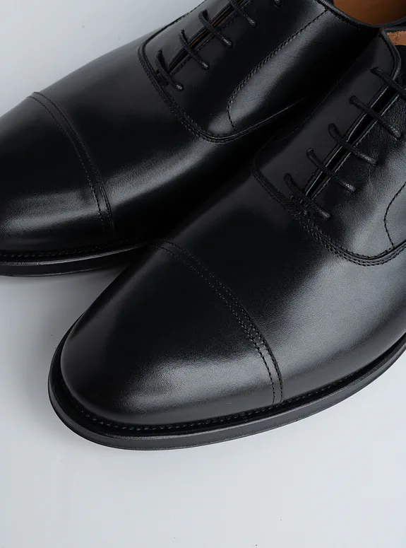 Černá obuv z přírodní kůže. Doporučujeme pro formální příležitosti. Tyto elegantní polobotky se vyznačují nadčasovým designem a precizním zpracováním, které zaručují dlouhou životnost. Ideální volba pro ty, kteří hledají kombinaci stylu a komfortu. Obuv se přizpůsobí tvaru vaší nohy a poskytne celodenní pohodlí.