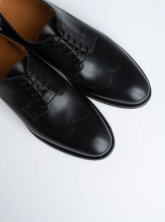 Černá obuv z přírodní kůže, vyrobená technologií Bologna Construction pro maximální pohodlí a flexibilitu. Doporučujeme pro formální příležitosti. Tyto elegantní polobotky se vyznačují nadčasovým designem a precizním zpracováním, které zaručují dlouhou životnost. Ideální volba pro ty, kteří hledají kombinaci stylu a komfortu. Obuv se přizpůsobí tvaru vaší nohy a poskytne celodenní pohodlí.
