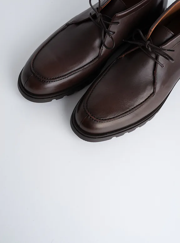 Hnědá kotníková obuv z přírodní kůže. Doporučujeme pro každodenní nošení a neformální pracovní prostředí v podzimních a zimních měsících. Tato elegantní obuv se vyznačuje nadčasovým designem a precizním zpracováním, které zaručují odolnost a dlouhou životnost. Skvělá volba pro ty, kteří hledají spojení elegance, praktičnosti a tepelného komfortu. Obuv se přizpůsobí tvaru vaší nohy a poskytuje celodenní pohodlí i v náročnějších klimatických podmínkách.