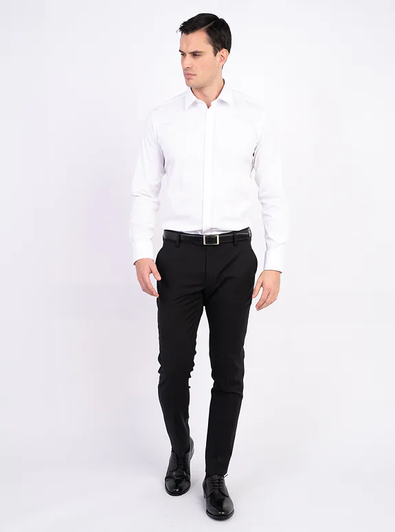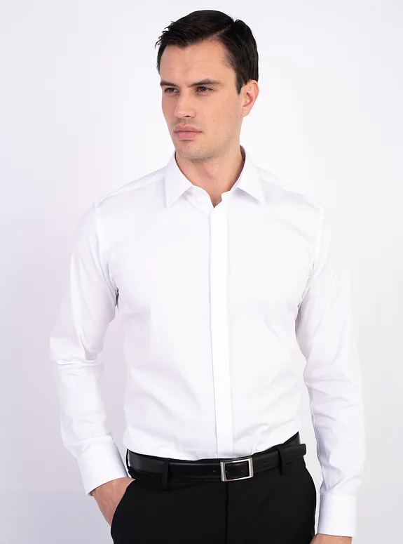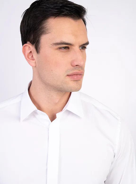 Bílá košile ze směsové bavlny s příměsí elastanu od italského výrobce materiálů Albini. Košile je ušitá v přiléhavém střihu, který kopíruje postavu. Doporučujeme pro slavnostní příležitosti.