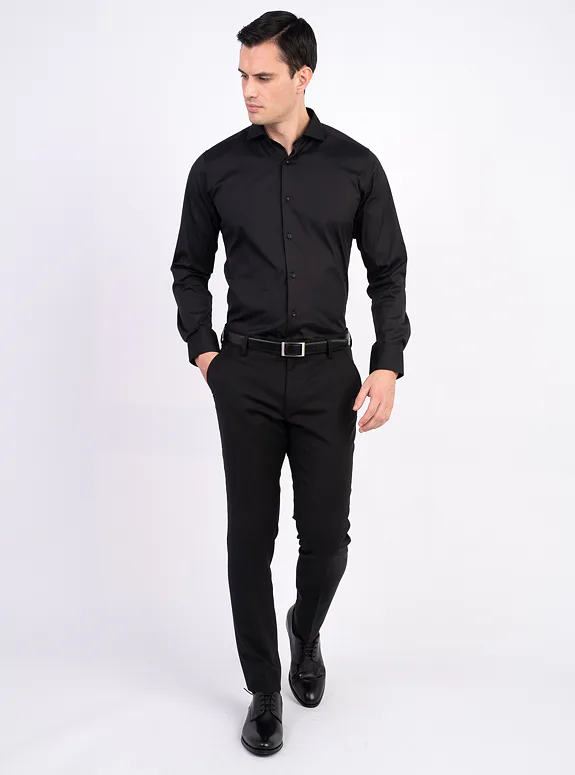 Černá košile ze směsové bavlny s příměsí elastanu od italského výrobce materiálů Albini. Košile je ušitá v přiléhavém střihu, který kopíruje postavu. Doporučujeme pro formální příležitosti.