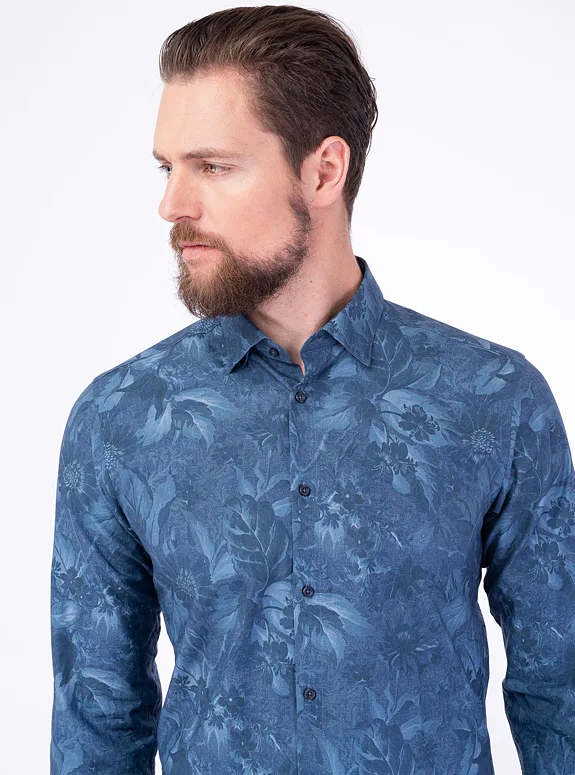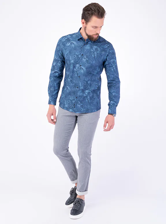 Modrá košile z bavlny s příměsí elastanu od slovinského výrobce materiálů Tekstina. Košile je ušitá ve standardním střihu pro větší pohodlí. Doporučujeme pro neformální příležitosti.