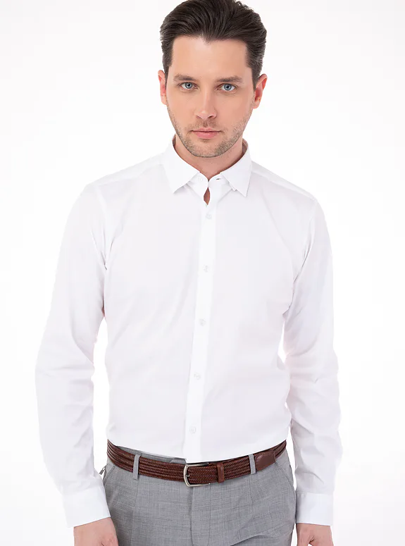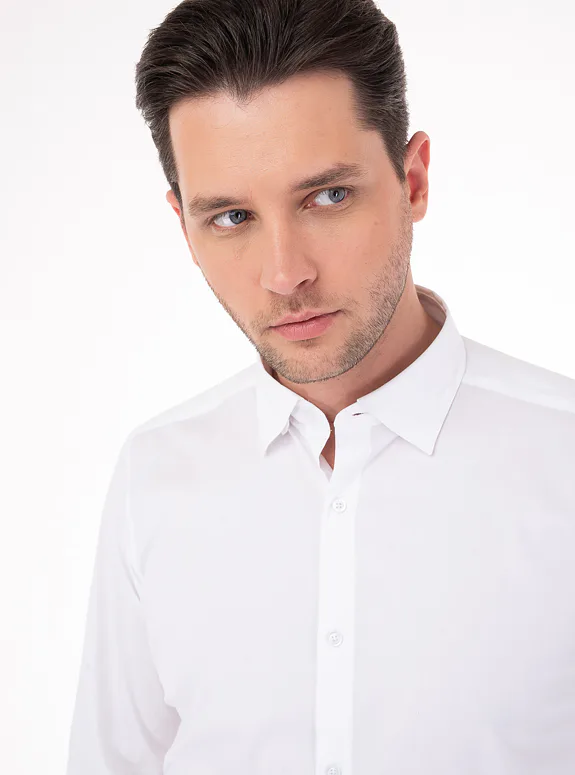 Bílá košile ze směsové bavlny s příměsí elastanu od italského výrobce materiálů Albini. Košile je ušitá ve standardním střihu pro větší pohodlí. Doporučujeme pro neformální příležitosti.