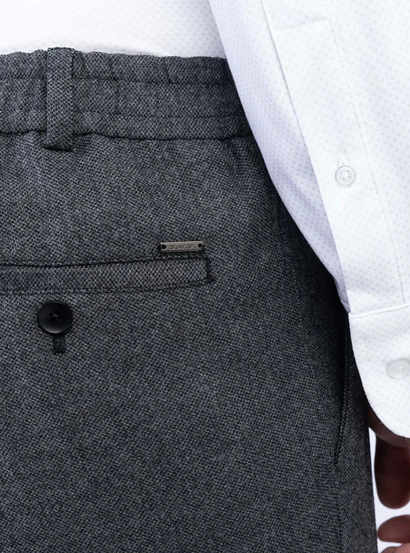 Volnočasové separátní kalhoty jsou vyrobeny z kombinace vláken, díky nimž jsou kalhoty uživatelsky přívětivé na údržbu a také jsou příjemné v pohybu. Pro tento střih kalhot jsme použili velice oblíbenou variantu stahování v pase pruženkou přes celý zadní díl. Díky tomu jsou kalhoty velice pohodlné a uživatelsky nenáročné. Tyto kalhoty jsou velmi dobře kombinovatelné napříč kolekcí a hodí se jak k separátnímu saku nebo s košilí samostatně.