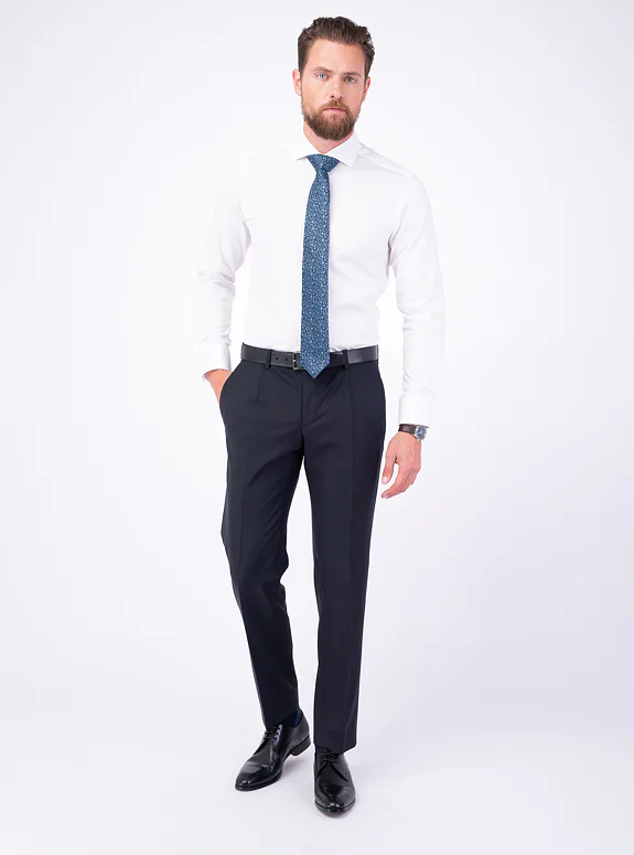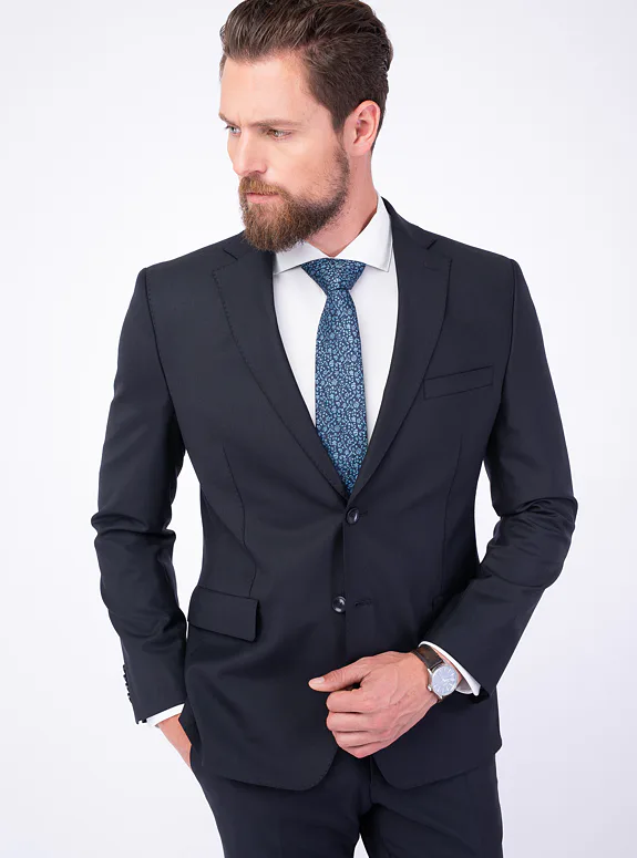 Modrý oblek ze směsové vlny s příměsí elastanu. Oblek je ušitý ve standardním střihu pro větší pohodlí. Doporučujeme pro slavnostní příležitosti.