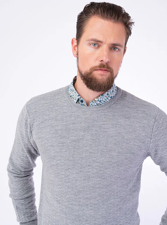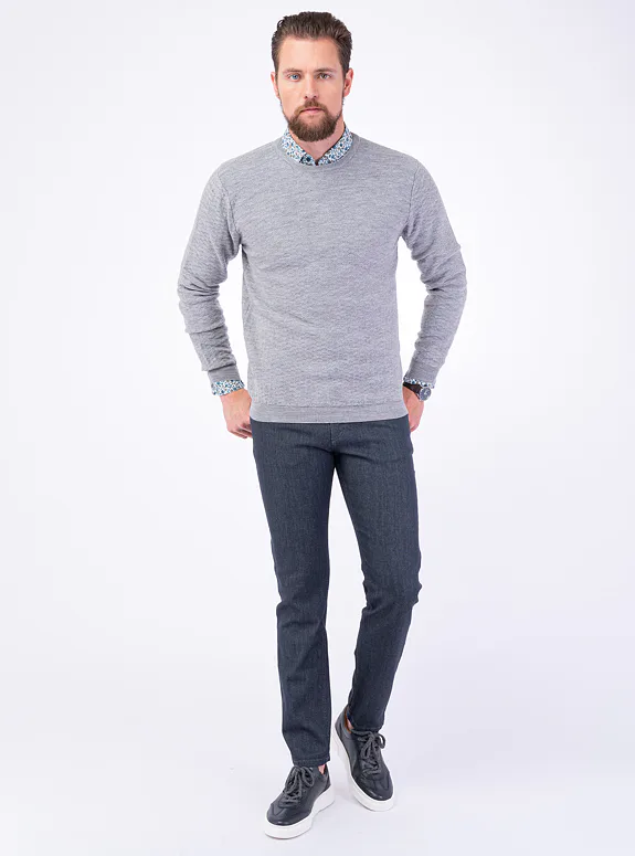 Šedý svetr z čisté merino vlny. Svetr je ušitý ve standardním střihu pro větší pohodlí. Doporučujeme pro neformální příležitosti.