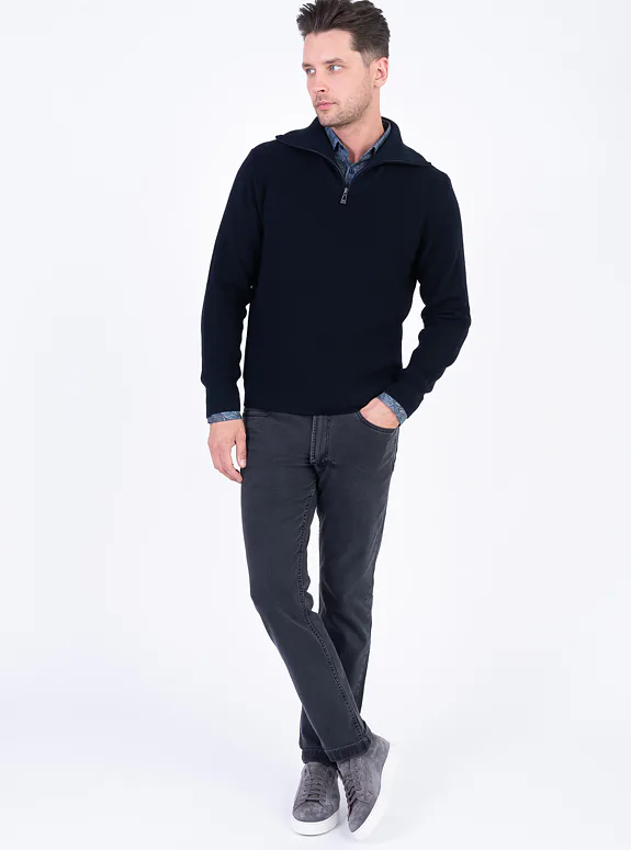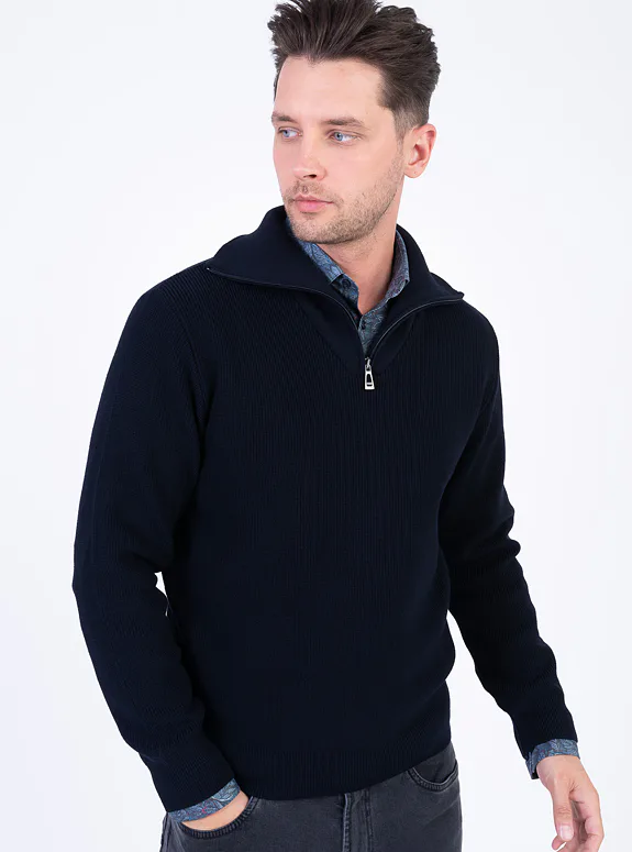 Černý svetr z merino vlny s příměsí akrylu. Svetr je ušitý ve standardním střihu pro větší pohodlí. Doporučujeme pro neformální příležitosti.