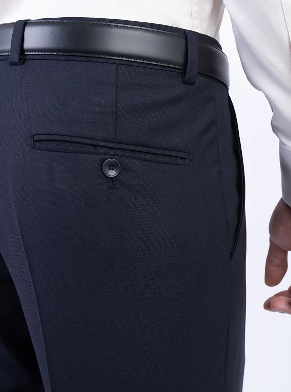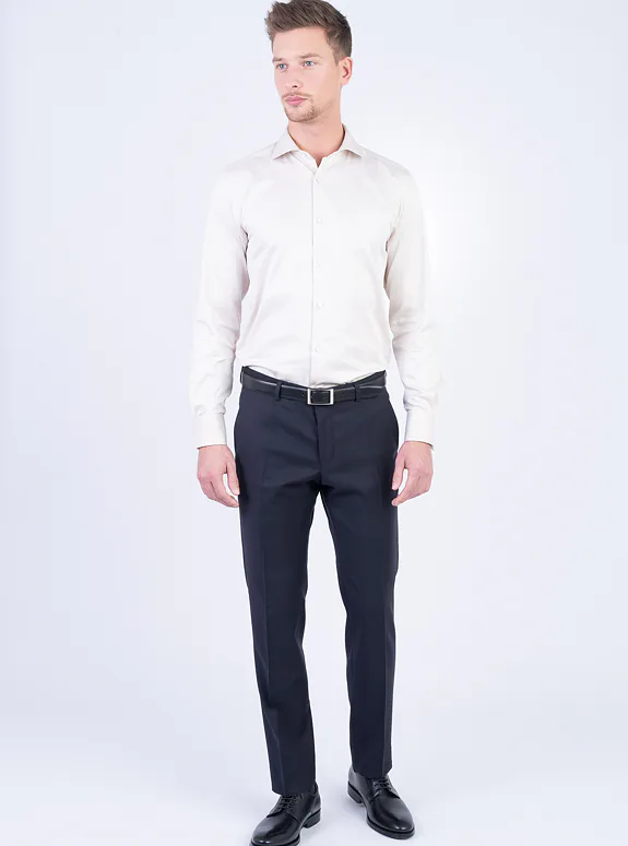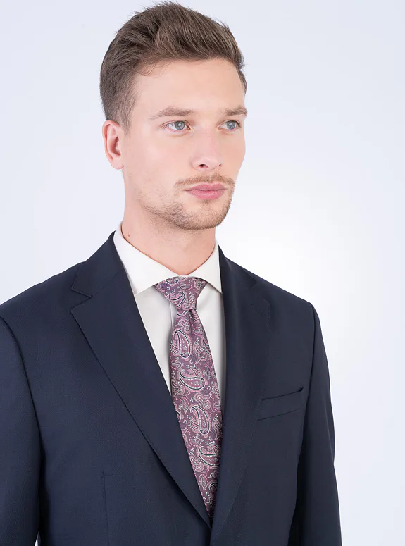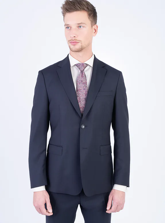 Tmavě modrý oblek z čisté vlny od italského výrobce materiálů Marzotto. Oblek je ušitý ve standardním střihu pro větší pohodlí. Doporučujeme pro formální příležitosti.