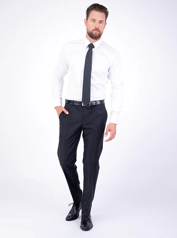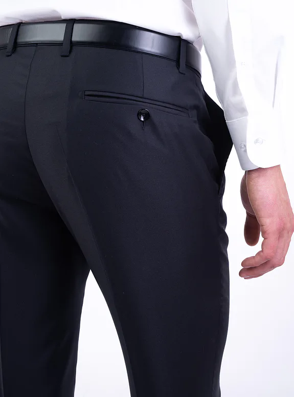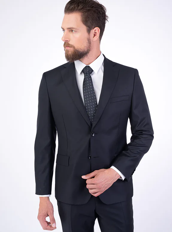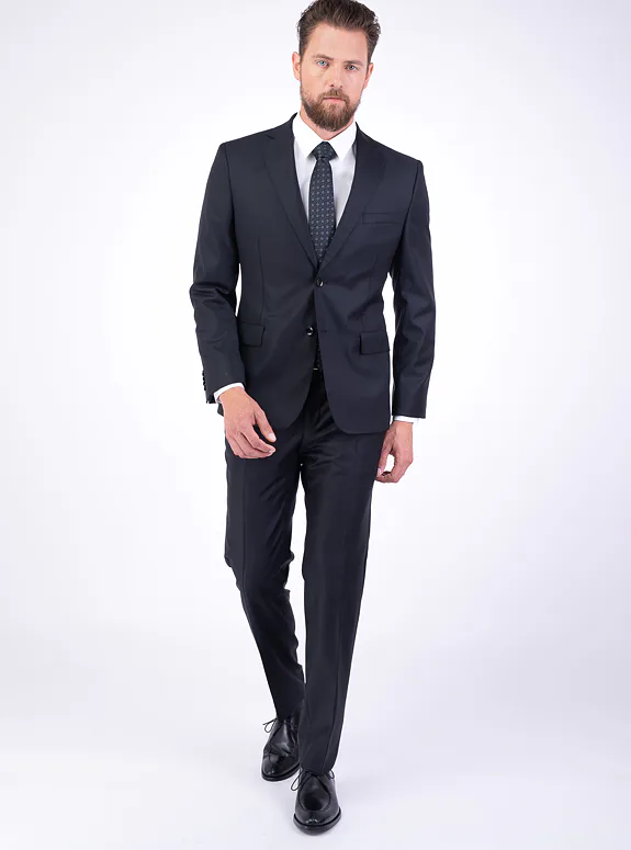 Černý oblek z čisté vlny od italského výrobce materiálů Vitale Barberis Canonico. Oblek je ušitý ve standardním střihu pro větší pohodlí. Doporučujeme pro formální příležitosti.