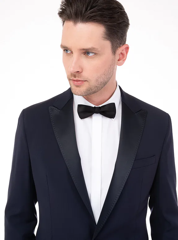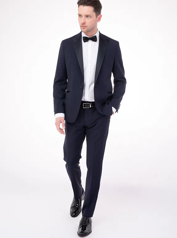 Modrý oblek z čisté vlny od italského výrobce materiálů Marzotto. Oblek je ušitý v přiléhavém střihu, který kopíruje postavu. Doporučujeme pro slavnostní příležitosti.