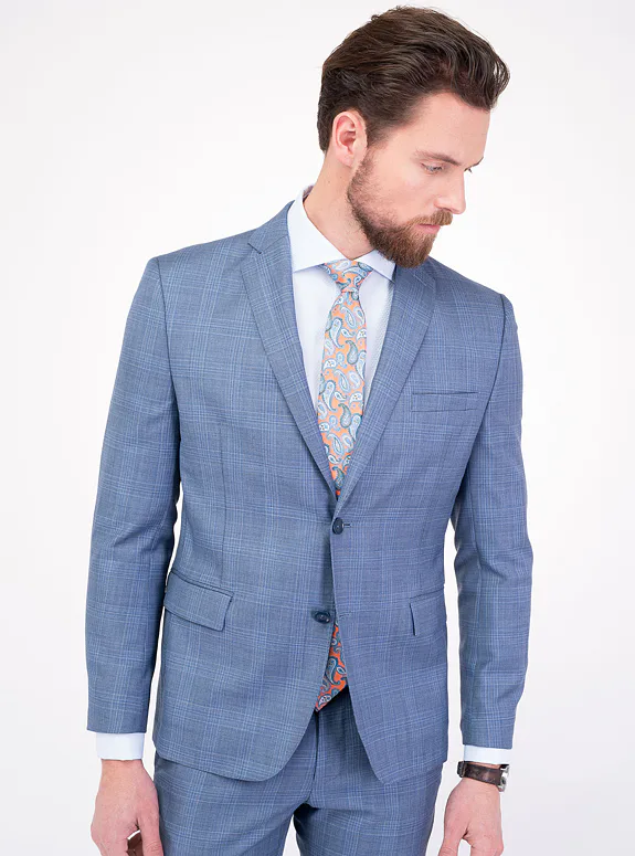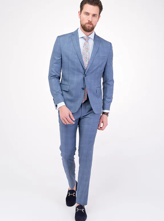 Modrý oblek z čisté vlny Super 110'S od italského výrobce materiálů Reda. Oblek je ušitý ve standardním střihu pro větší pohodlí. Doporučujeme pro formální příležitosti.