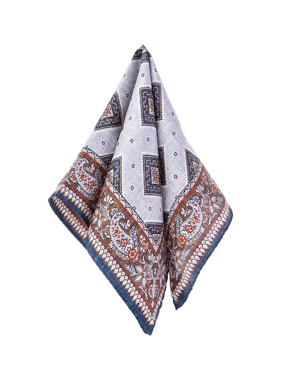 Modrý kapesníček z čistého hedvábí. Rozměry kapesníčku jsou 32 x 32 cm. Doporučujeme pro formální příležitosti.