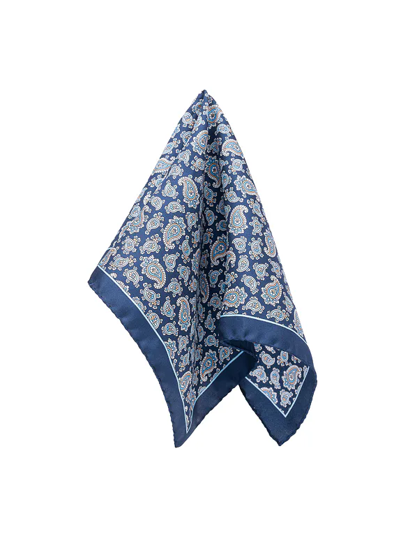 Modrý kapesníček z čistého hedvábí. Rozměry kapesníčku jsou 36 x 36 cm. Doporučujeme pro slavnostní příležitosti.